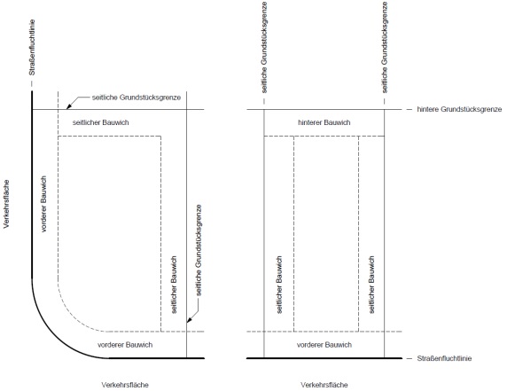 - auf dem innerhalb von Straßenfluchtlinien liegenden Teil eines Grundstücks bis 50 cm